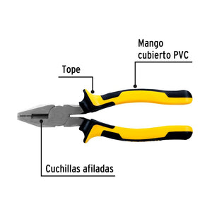 Este alicate es una herramienta de trabajo profesional de primera calidad. Está diseñada para proporcionar un agarre cómodo y seguro, con una construcción de acero resistente para una durabilidad excepcional. Perfecto para trabajos de electricidad, ya que ofrece una presión de sujeción precisa y una resistencia a la corrosión superior. Una excelente opción para los electricistas profesionales que buscan un Alicate de calidad superior.
