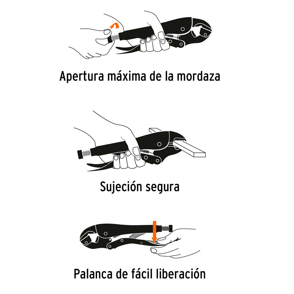 - Mordazas curvas de acero al cromo molibdeno para mayor durabilidad y agarreMango con relieve que ofrece mayor agarre y evita que la pinza resbale
