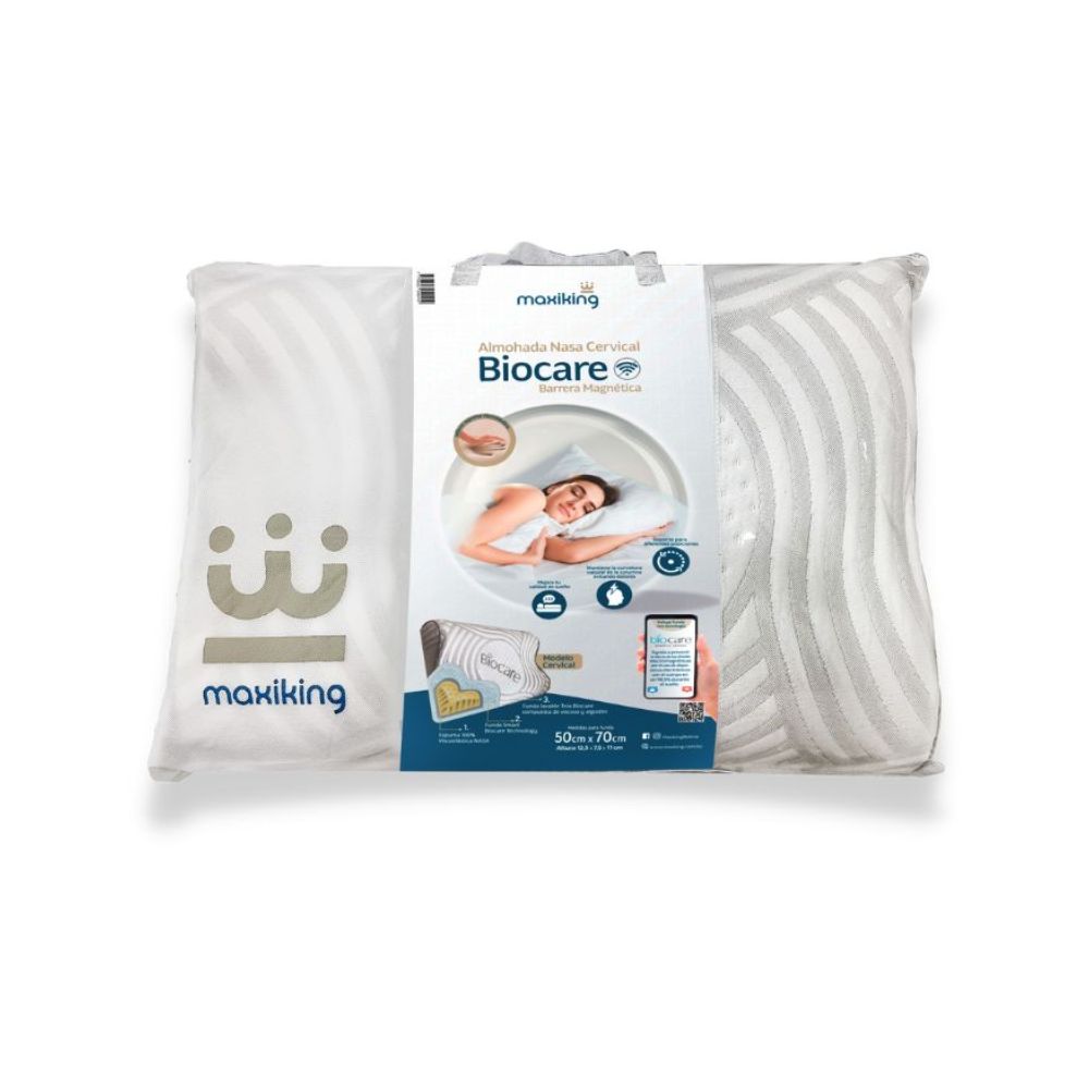 La almohada Biocare Cervical crea una barrera electromagnética que te protege de las ondas que emiten los dispositivos electrónicos como celulares, pantallas de televisión, computadoras, etc. La almohada Biocare, cuenta con una Funda elaborada con la Nanotecnología Biocare, desarrollada y patentada por Boyteks y verificada a nivel mundial por laboratorios certificados.Su composición de espuma Nasa y tecnología Biocare harán de tú descanso una experiencia increíble, ya que mejora tu calidad de sueño, brindándote gran Soporte y adaptabilidad, manteniendo la curvatura natural de la columna, cuello y cabeza.