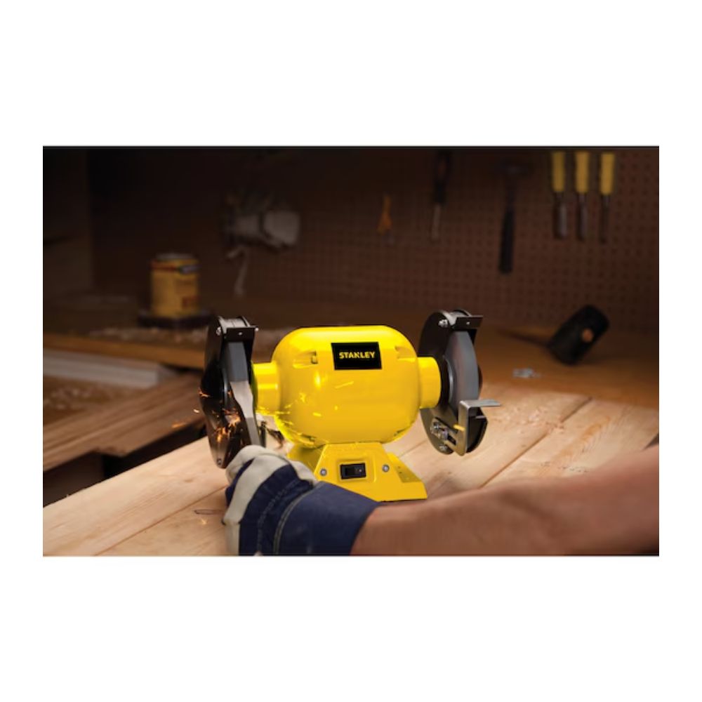 La Amoladora/Esmeril Stanley de Banco 1/2 HP - 373W es una herramienta eléctrica de alta eficiencia diseñada para trabajos de afilado, desbaste, y pulido en talleres y entornos industriales. Con un motor de 1/2 caballo de fuerza (373 vatios), proporciona suficiente potencia para realizar tareas exigentes de manera continua.