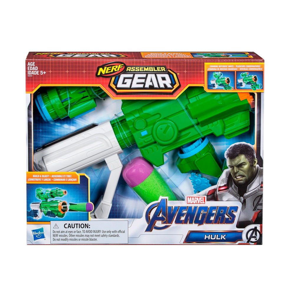 Con Marvel Avengers Endgame: Nerf Hulk Assembler Gear con tecnología Nerf, los niños pueden armar su último desintegrador e imaginar derrotar a los villanos con un misil Nerf Mega. Cada conjunto de Assembler Gear presenta diferentes combinaciones de desintegradores y se puede combinar con otros conjuntos de Assembler Gear (cada conjunto se vende por separado) para construir desintegradores personalizables y prepararse para entrar en acción, con más de 100 combinaciones de blásters con múltiples juegos (cada juego se vende por separado)