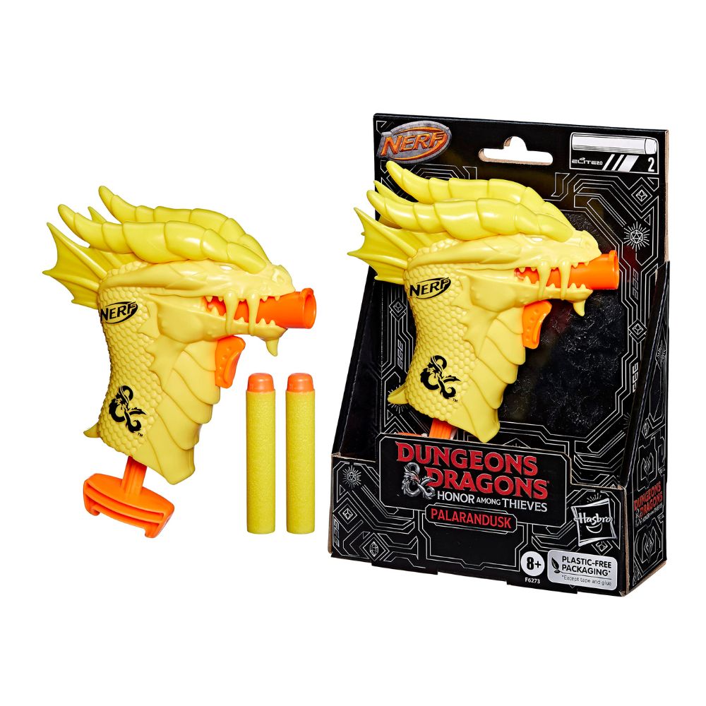 El Nerf Microshots Dungeons & Dragons Palarandusk Blaster está inspirado en el dragón dorado de la película Dungeons & Dragons: Honor Among Thieves y el juego de rol D&D