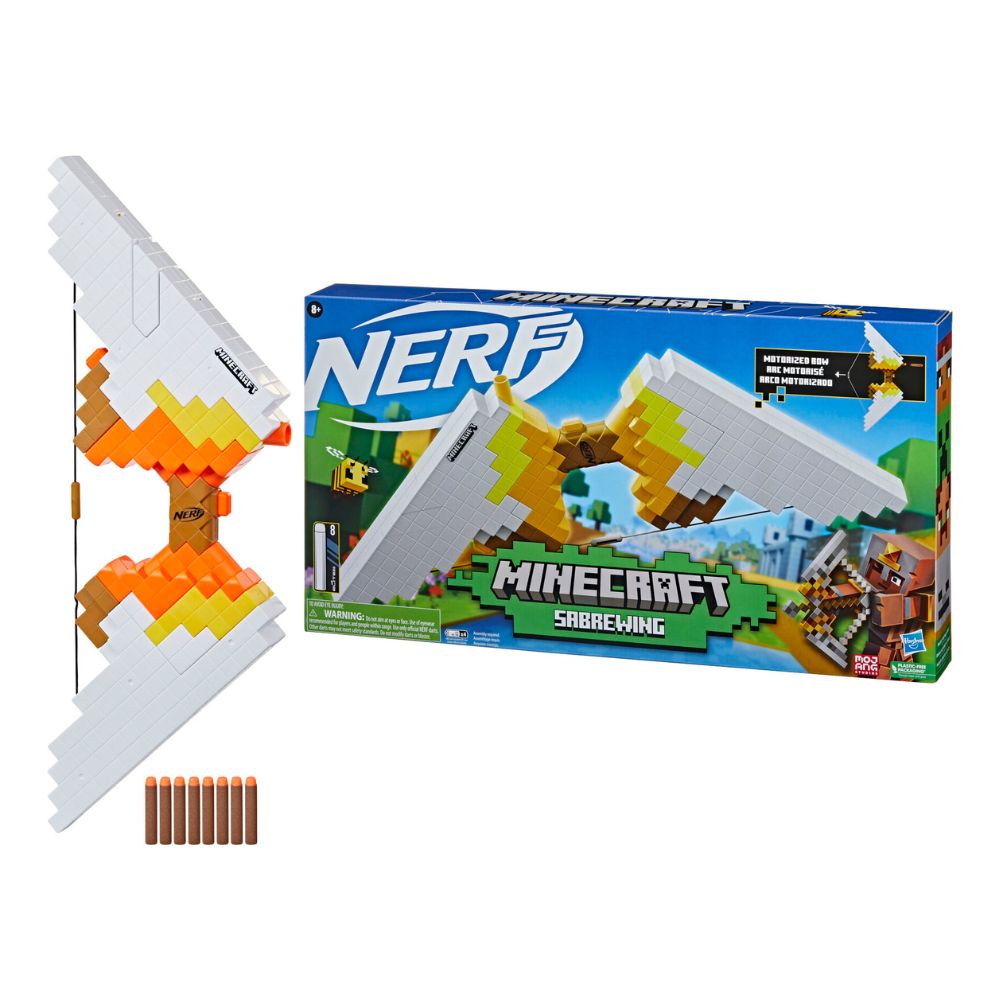 Nerf y Minecraft se unen para traerte el arco Sabrewing, inspirado en el popular juego Minecraft Dungeons.