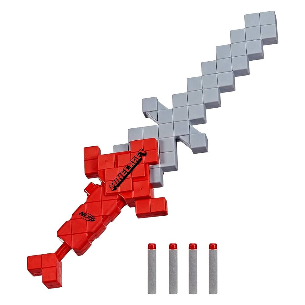 La espada dispara dardos de espuma Nerf, para que puedas divertirte jugando con ella de 2 maneras diferentes en juegos de interior y exterior. Imagínate en el mundo de Minecraft: Dungeons, con la espada a tu lado y listo para la aventura. Podrás sorprender a tus oponentes apuntando con la espada y lanzando un dardo por los aires. La espada dispara 1 dardo y es fácil de usar. Cargue el dardo, baje el mango de cebado y presione el botón para disparar el dardo.