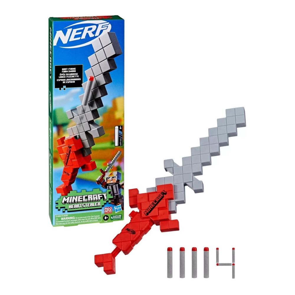 Nerf y Minecraft se unen para ofrecerte la espada Heartstealer que se inspira en el popular juego Minecraft: Dungeons.