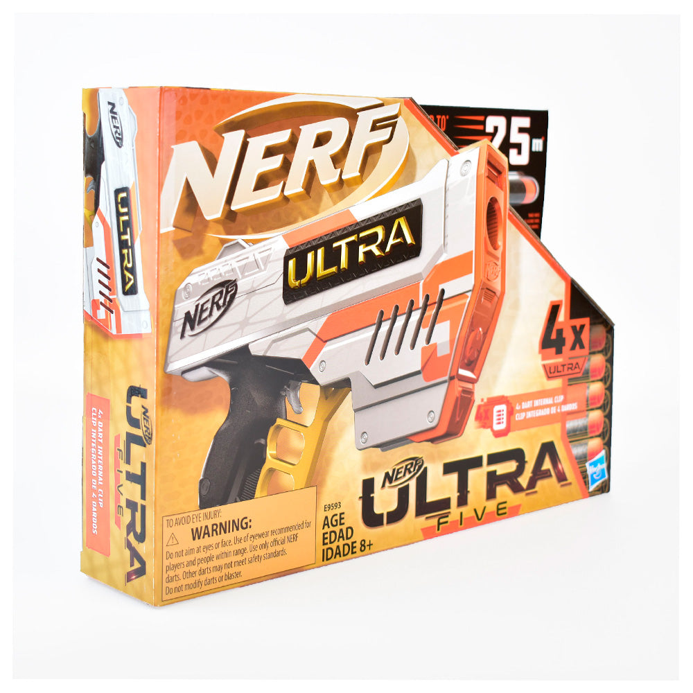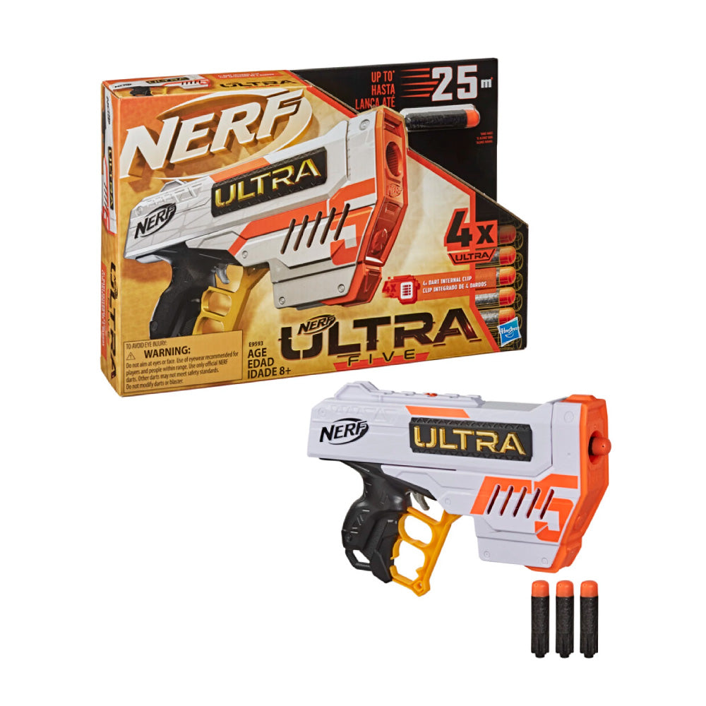 ¡Experimente distancia, precisión y velocidad extremas con el lanzador Nerf Ultra Five que está diseñado con funciones avanzadas para llevar sus juegos Nerf al siguiente nivel!