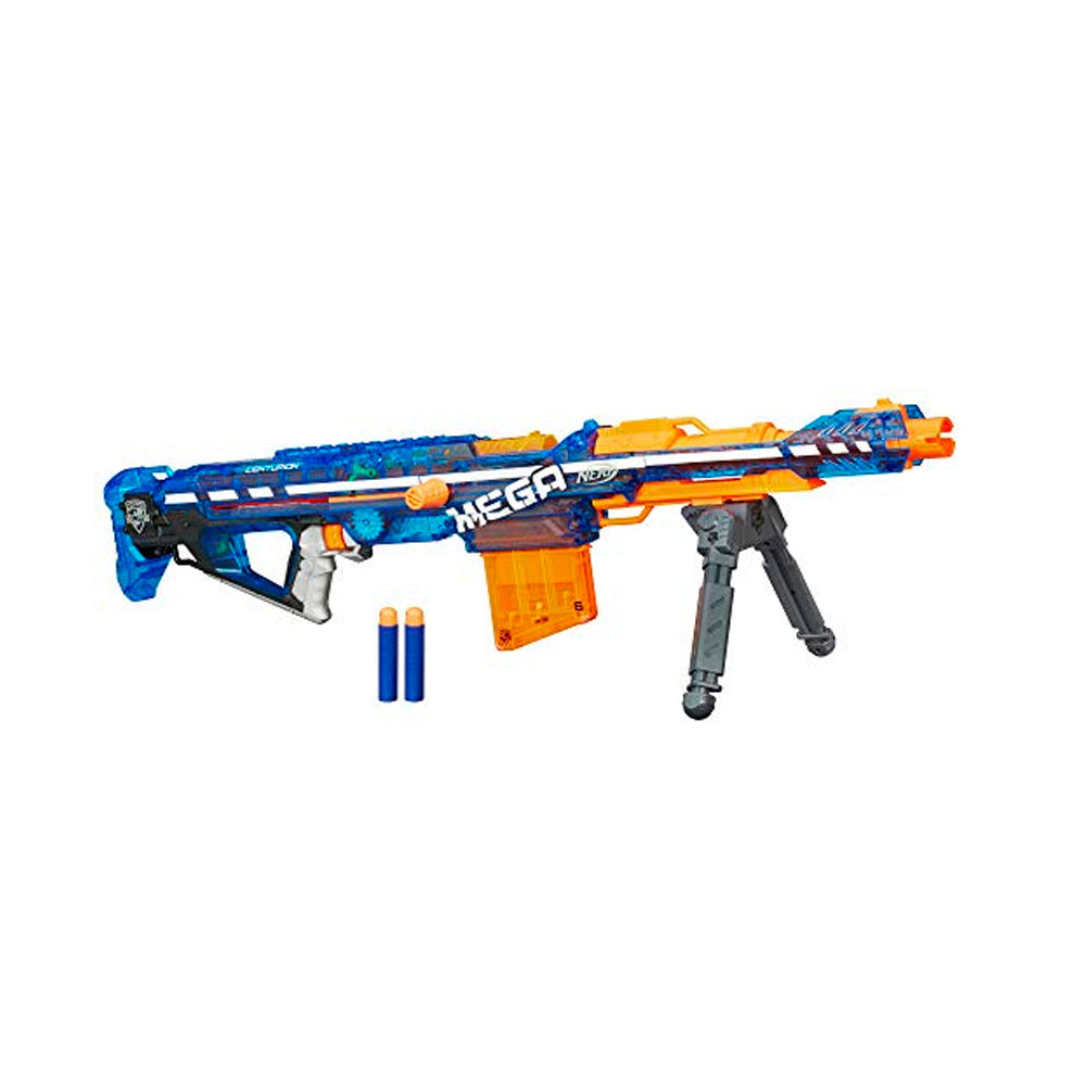 ¡Lanza un asalto de largo alcance con este increíble lanzador Centurion de alto calibre! Este lanzador N-Strike Elite dispara MEGA dardos para batallas más grandes. ¡Están diseñados para disparar más lejos que nunca y los Mega Whistler Darts gritan mientras vuelan! Coloque el soporte bípode para obtener aún más precisión y cargue el MEGA Clip con sus dardos. Con un alcance de 100 pies y 6 MEGA dardos, puedes superar los límites de tu puntería. ¡Amplía tu credibilidad como francotirador con el lanzador Centurion MEGA! Nerf y todos los personajes relacionados son marcas comerciales de Hasbro.
