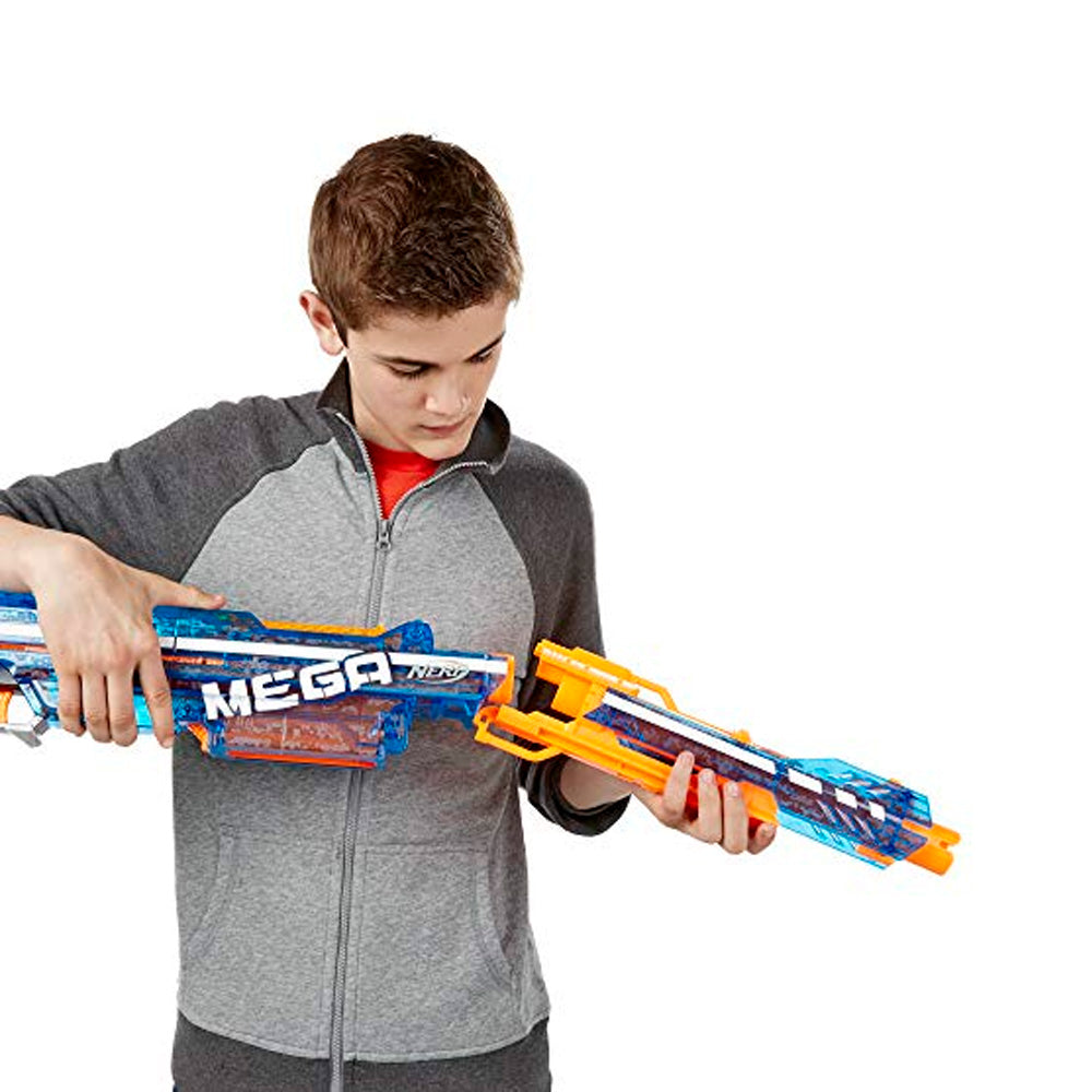 - Blaster viene con 6 MEGA Dardos, clip MEGA Dart, soporte para bípode extraíble e instrucciones. A partir de 8 años.