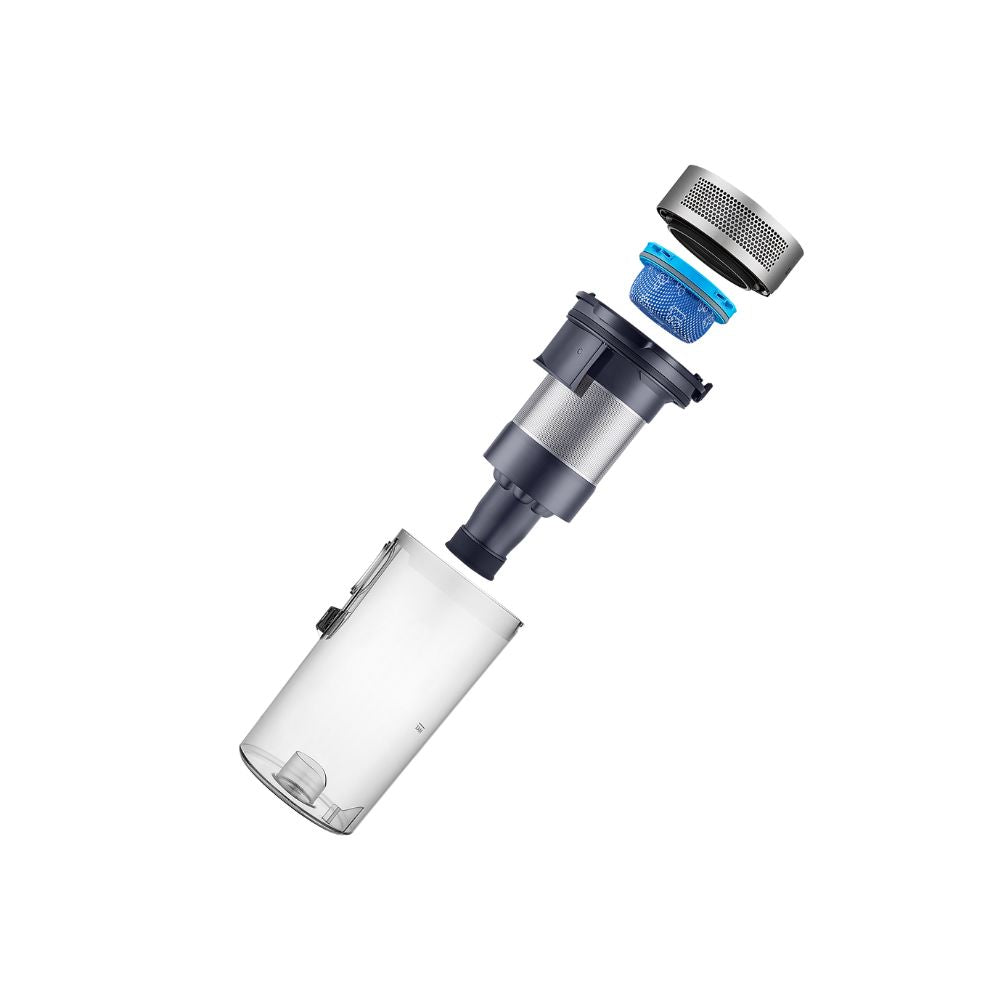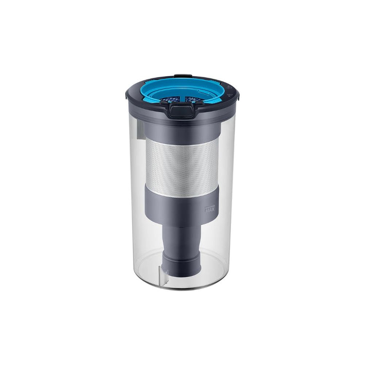 Disfrute de un aire limpio y una potencia de aspiración extrema con la estructura multiciclónica de alta eficiencia del Jet Cyclone. Una trayectoria de aire óptima reduce la resistencia del aire y 9 ciclones, con 27 entradas de aire, reducen la pérdida de succión. Además, atrapa higiénicamente el polvo fino que es aspirado por el aspirador.