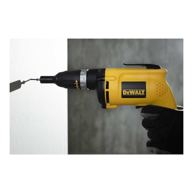 El Atornillador DW255 por su regulación de profundidad es ideal para la fijación y perforación en placas de yeso y madera de baja dureza. Su empuñadora recubierta de goma y diseño de gatillo ergonómico, permite un uso cómodo y continuo.