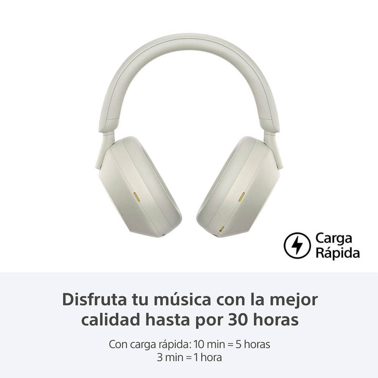 Nuestros audífonos WH-1000XM5 ultracómodos redefinen el audio sin distracciones y la claridad en las llamadas. Dos procesadores controlan los varios micrófonos para ofrecer un sistema de noise cancelling sin precedentes, al tiempo que el optimizador de NC automático maximiza automáticamente el noise cancelling en función del entorno y de cómo uses los audífonos. La unidad de diafragma de 30 mm especialmente diseñada ofrece una calidad de sonido superior para todo tu entretenimiento.