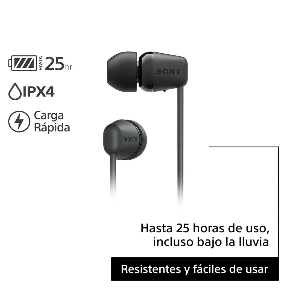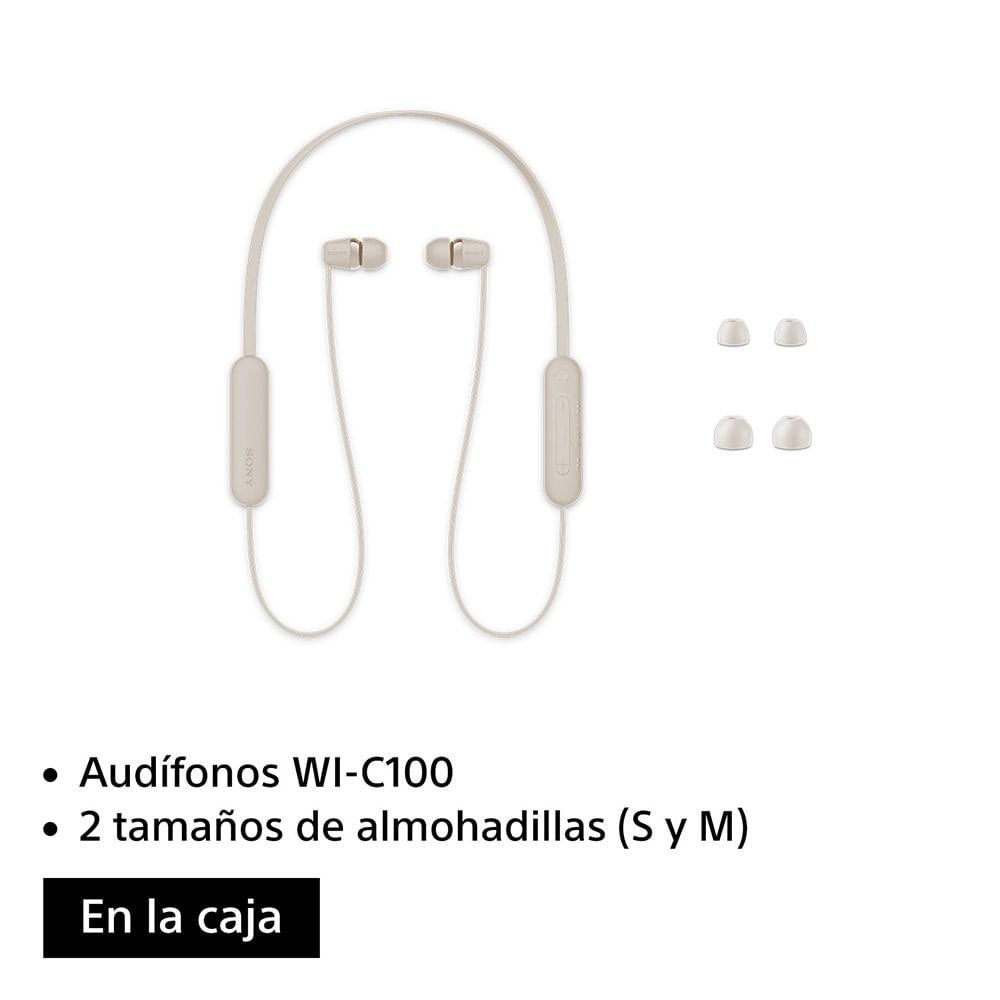 Los audífonos internos inalámbricos WI-C100, cómodos y fáciles de usar, combinan una batería de larga duración con carga rápida y un sonido personalizable de alta calidad. Para tu tranquilidad, cuentan con resistencia IPX4 al agua, y son compatibles con la aplicación Sony | Headphones Connect. Hasta 25 horas de duración de la batería Ajusta con precisión el sonido con la aplicación Sony | Headphones Connect Resistencia IPX4 al sudor y las salpicaduras