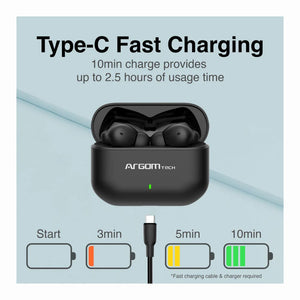 • 5 horas de reproducción (ANC desactivado) + 20 horas adicionales con estuche