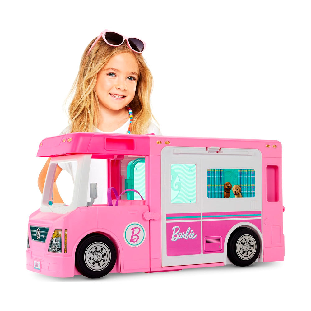 - Con múltiples transformaciones, 3 vehículos, 5 espacios habitables, juego de 360 grados y 60 accesorios, el DreamCamper 3 en 1 de Barbie anima a las mentes jóvenes a explorar aventuras al aire libre y dar vida a sus sueños de viaje