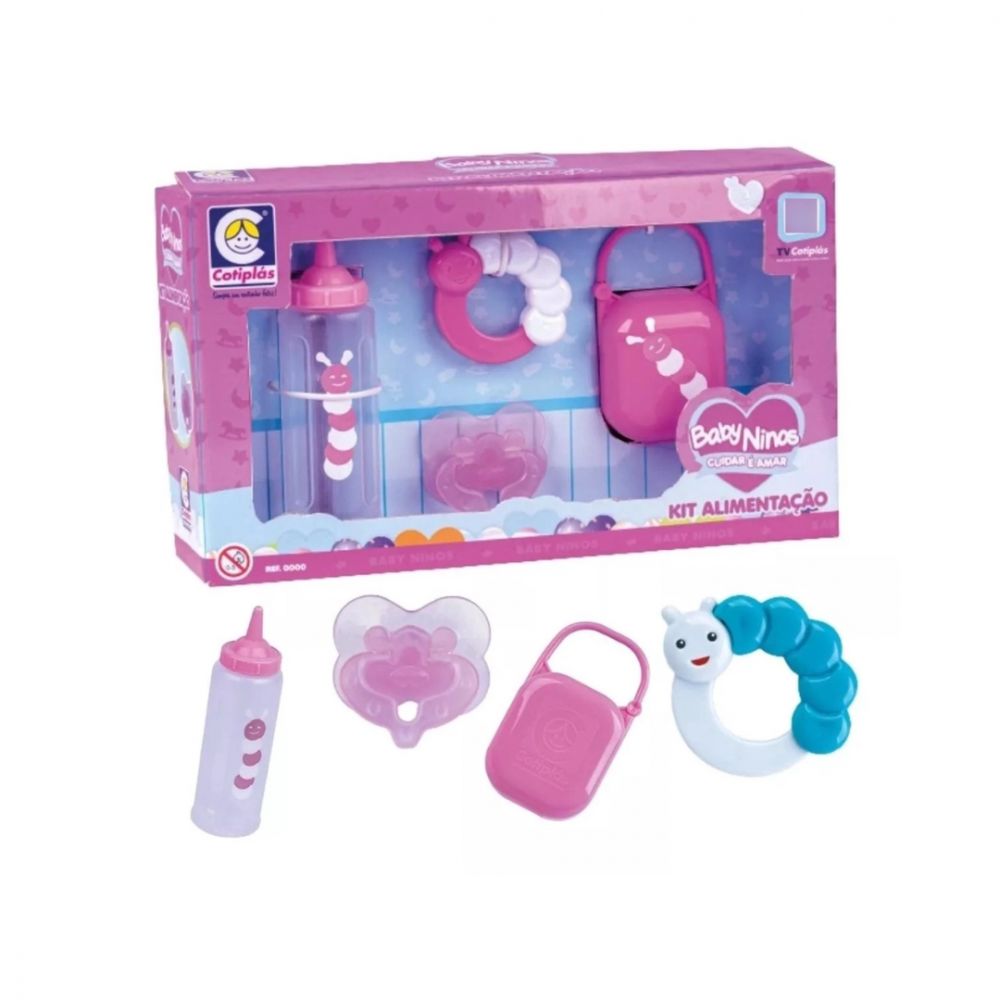 Kit de accesorios para juegos de cuidado infantil (biberón, chupete).