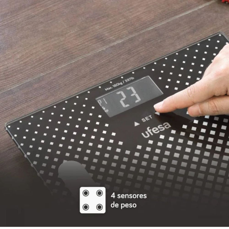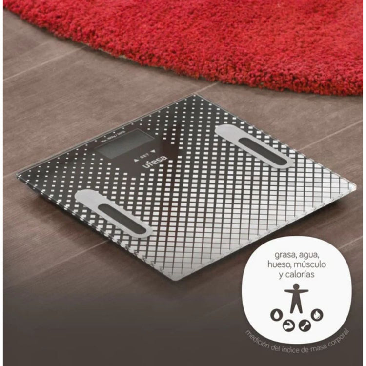 Bascula Bano Ufesa 30 x 30 Mide Masa Grasa Agua Hueso Músculo Ckal 180k Máximo