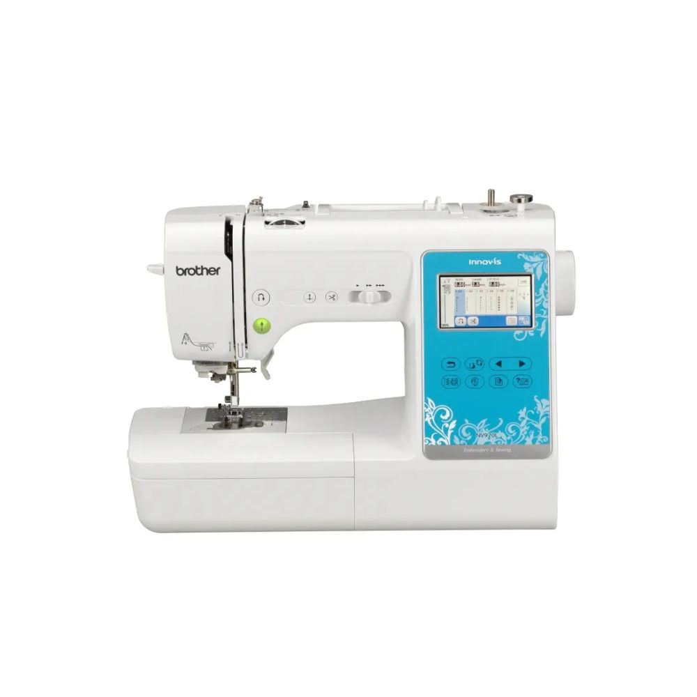 Presentamos esta increíble máquina de coser y bordar NV970L con conexión WIFI. Crea, edita y transfiere increíbles diseños desde la app ARTSPIRA. Si eres un entusiasta serio, te encantará lo bien que funciona con el pie para costura libre más largo y los dientes libres de arrastre, y descubrirás que es fácil de usar, con funciones como la edición en pantalla, botón de inicio/paro y más. Es por eso que decimos: "las cosas buenas vienen de a tres". Estamos seguros de que estarás de acuerdo.