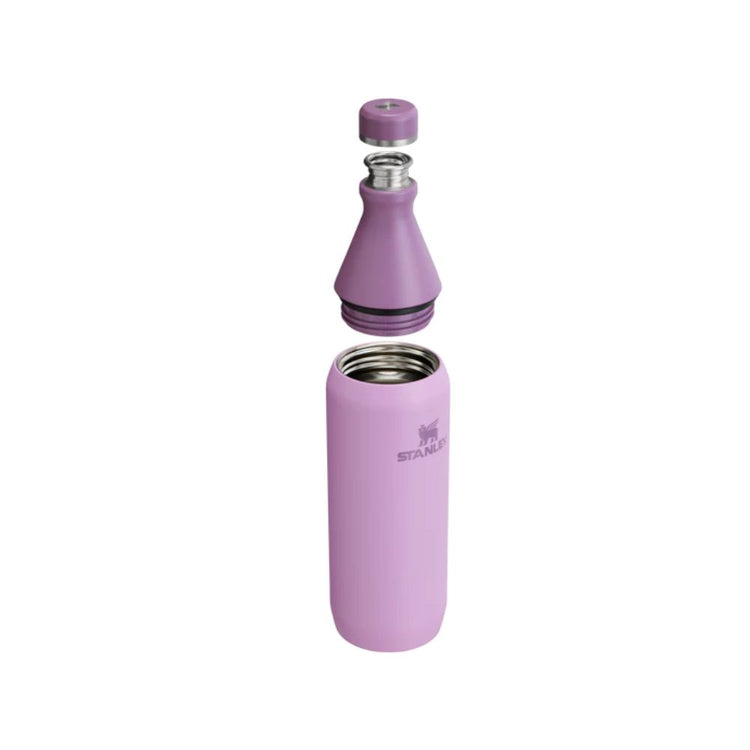 Con una forma icónica, el diseño delgado de esta nueva Botella All Day Slim hace que sea fácil de llevarla a todo lado y vivir una experiencia diferente de hidratación. Hecha de acero inoxidable 90% reciclado, cuenta con una abertura de dos piezas: una para sorber, que permite destapar con unos cuantos giros en la tapa y haciendo el mecanismo inverso se puede cerrar completamente para evitar cualquier tipo de fugas; y la otra para facilitar el rellenado con hielos, a su vez que facilitará la completa limpieza de la botella.