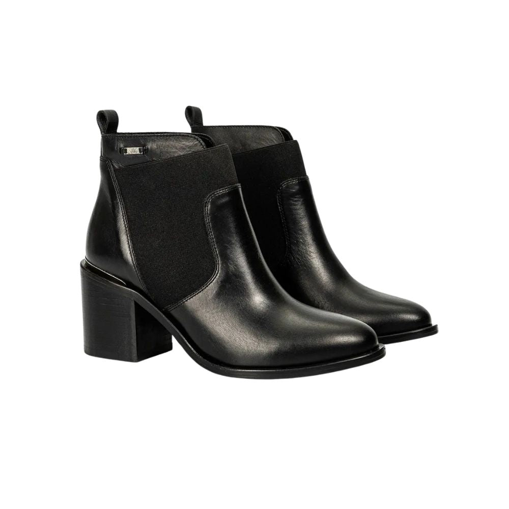 Nuestros botines clásicos de punta redonda se renuevan con piezas en elástico de alta densidad y herrajes de lujo en la base del tacón. Su cuero de brillo sutil y costuras de lujo hacen de esta silueta versátil, clave para looks de oficina o de uso casual chic.