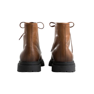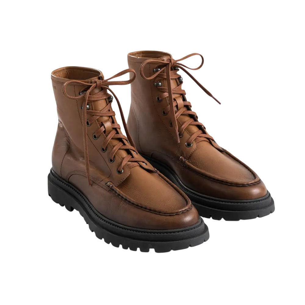 Estan elaboradas con cuero listo de brillo natural y un suave forro de cuero, estas botas destacan por sus durabilidad y estilo. Los detalles como cordones planos de algodón y ojaletes metálicos se suman a la suela semi tractorada, aportando versatilidad.