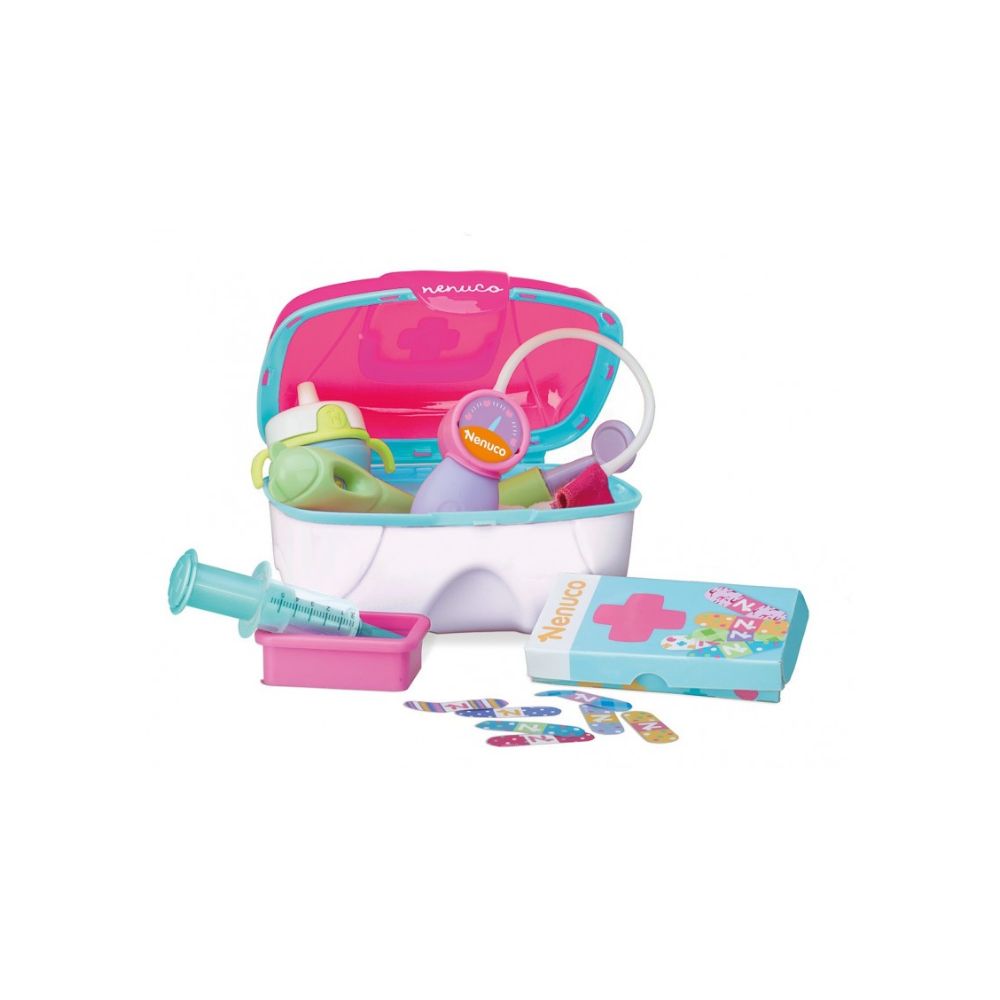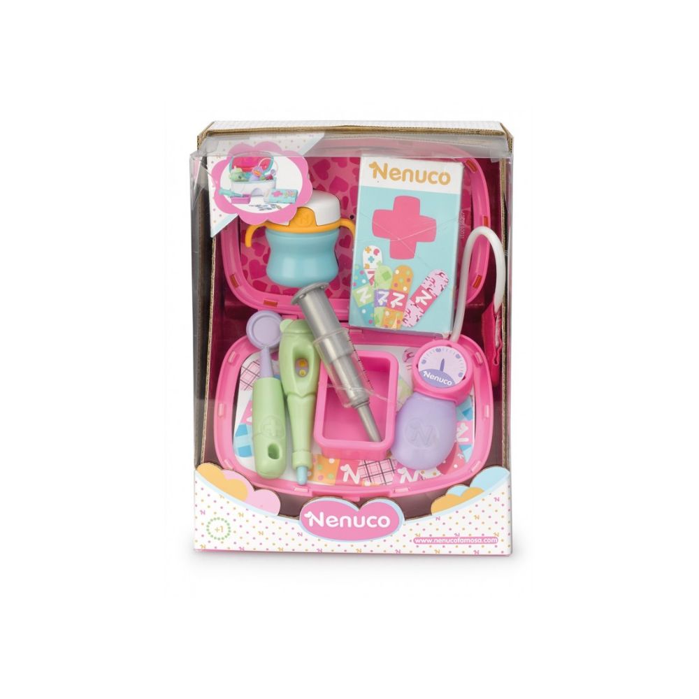 Completo botiquín de emergencias que cuenta con mucho instrumental para atender al pequeño Nenuco: termómetro, jeringuilla, medidor de tensión, tiritas decoradas etc.