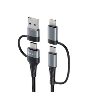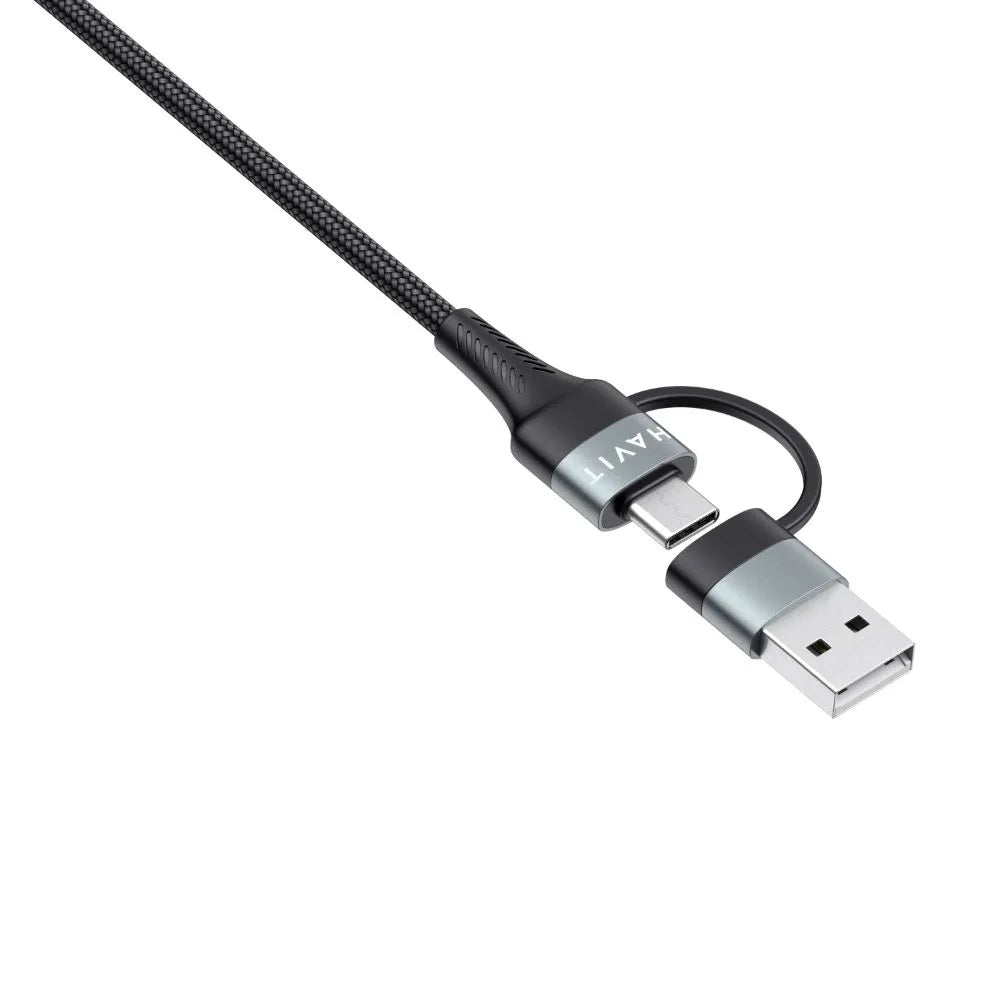 Cable Havit de carga multi puertos Conexion USB-A a USB-C Lightning PD20W USB-C PD60W CB6244-BG