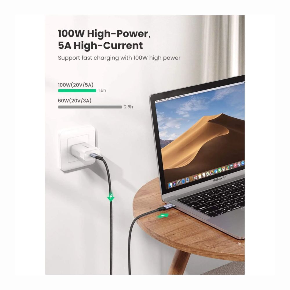 El cable UGREEN USB-C a USB-C 3.2 Gen 2 ofrece carga y sincronización rápidas entre dos dispositivos habilitados para USB Type-C. Puede usarlo para conectar su teléfono inteligente Pixel a la nueva Macbook Pro para transferir datos, o simplemente conectar su computadora portátil o teléfono celular tipo C a un adaptador de cargador de pared para obtener energía.
