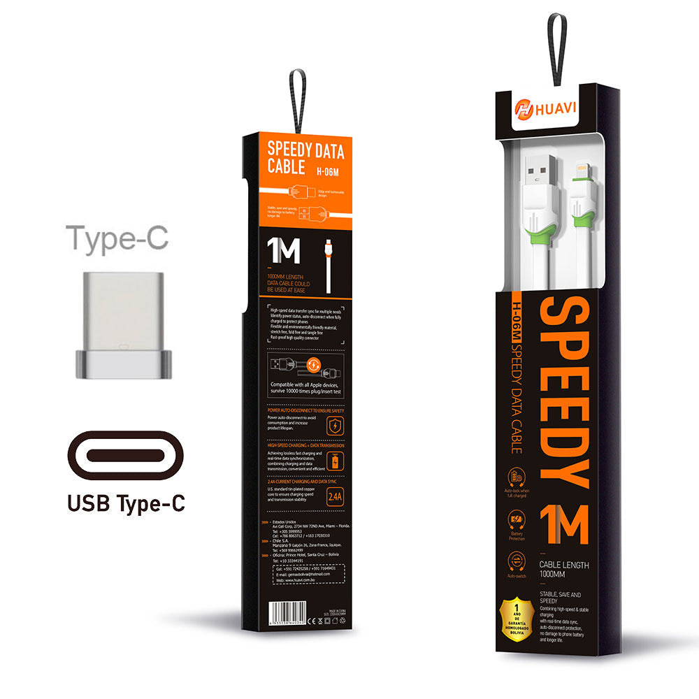 Cable Huavi U-06, cable plano con cobertura de silicona de 1m, usb data para transferencia de datos y carga con entrada Tipo C