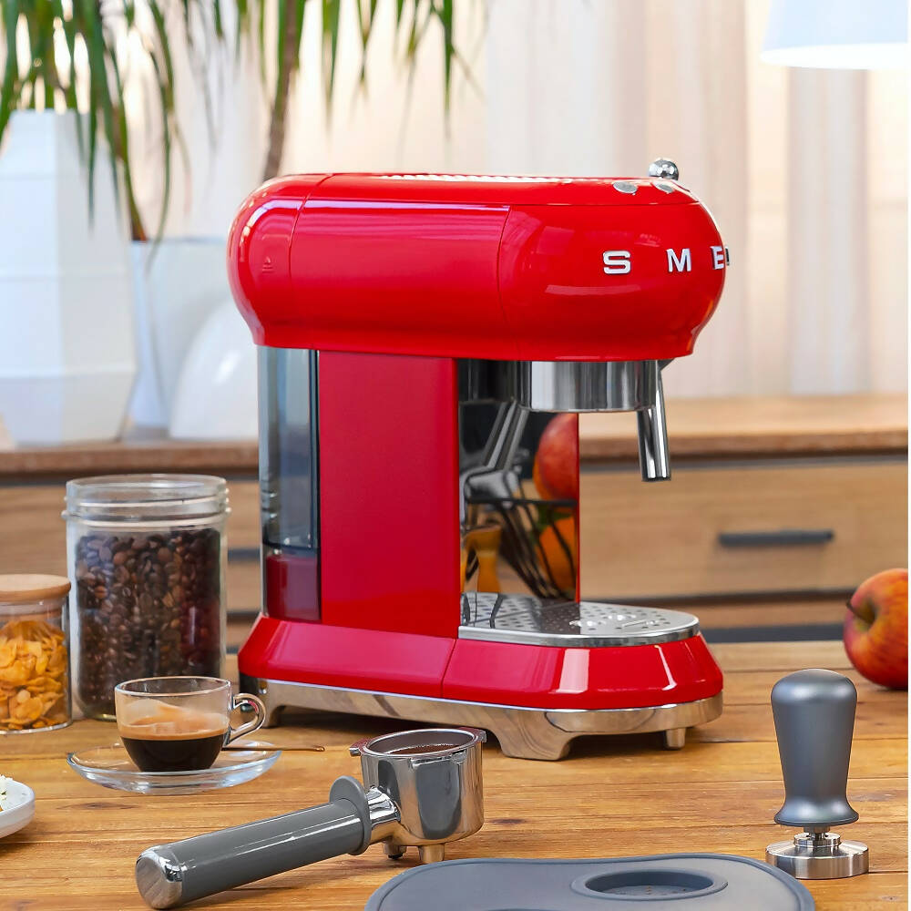 La cafetera espresso SMEG mantiene la tradición italiana en el mundo del café conquistando el espacio doméstico, enamorando a todos los amantes del espresso. Preparación fácil de tu tasa de café preferida, espresso, americano, vaporizador y dispensador de agua caliente.