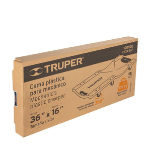La Cama de Plástico Truper para Mecánico de 36" es la herramienta ideal para brindarte comodidad y practicidad durante tus labores bajo vehículos. Con su diseño ligero y resistente, esta cama te ofrece el soporte necesario para trabajar con seguridad y eficiencia en tus proyectos automotrices.