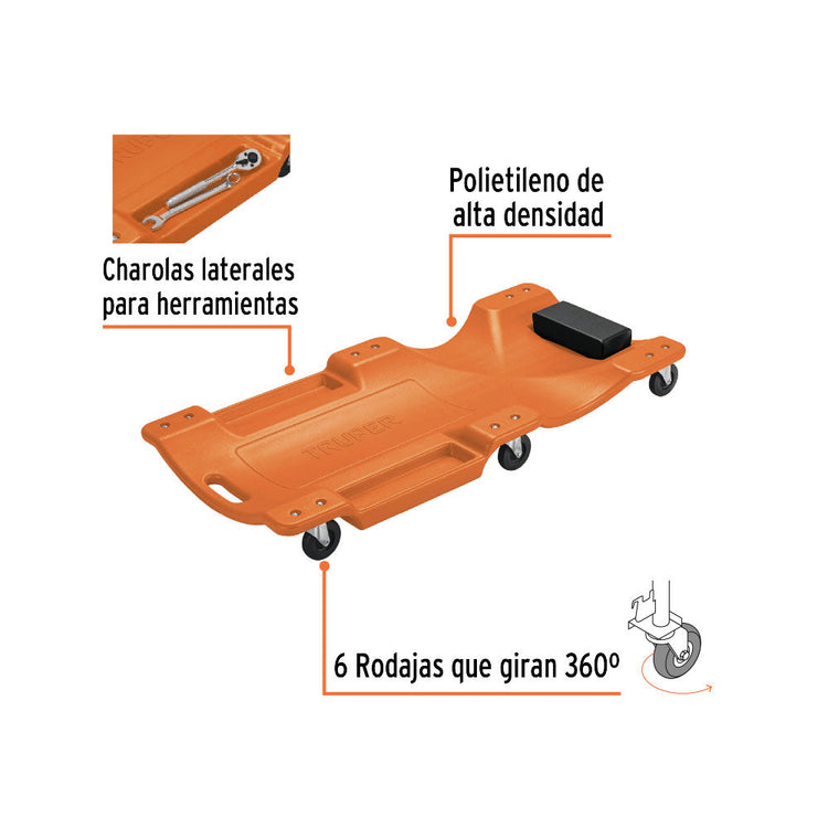 La cama plástica Truper para mecánico de 40 pulgadas es la solución perfecta para brindar comodidad y eficiencia en tu taller. Diseñada para satisfacer las necesidades específicas de los mecánicos, esta cama plástica ofrece un espacio cómodo y duradero para realizar tus tareas de manera más eficiente.