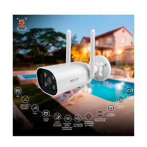 La cámara inteligente Wi-Fi® NHC-OF10 de Nexxt Solutions está diseñada para brindar seguridad continua en exteriores. Su construcción resistente a la intemperie y su resolución Full HD 1080p permiten monitorear tu hogar o negocio con gran claridad, incluso de noche gracias a su visión nocturna por infrarrojo. Incluye detección inteligente de movimiento, alertas en tiempo real, y audio bidireccional para comunicación remota. Se instala fácilmente con conexión Wi-Fi 2.4 GHz y es compatible con la app Nexxt Home, Google Assistant y Amazon Alexa.