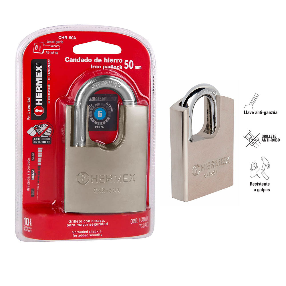- Protegido contra cortes de segueta, corta pernos y perforaciones