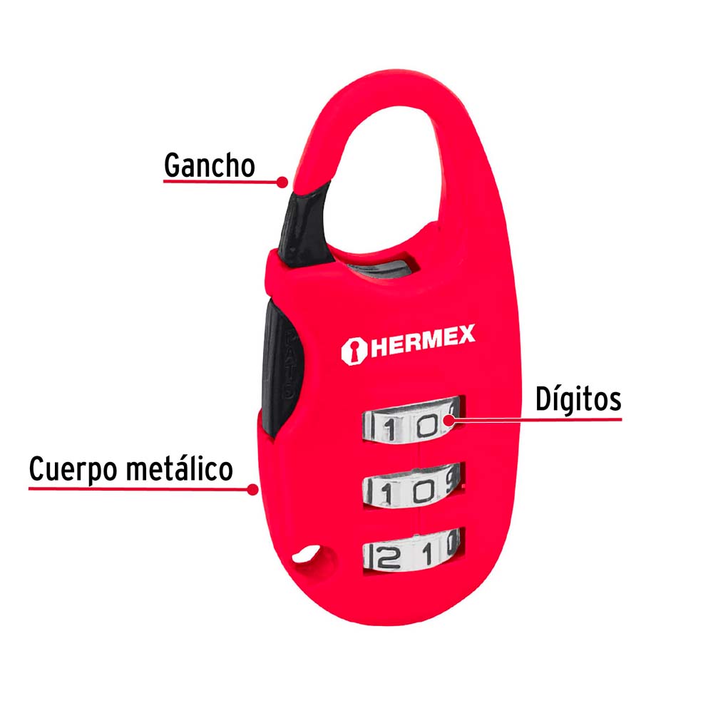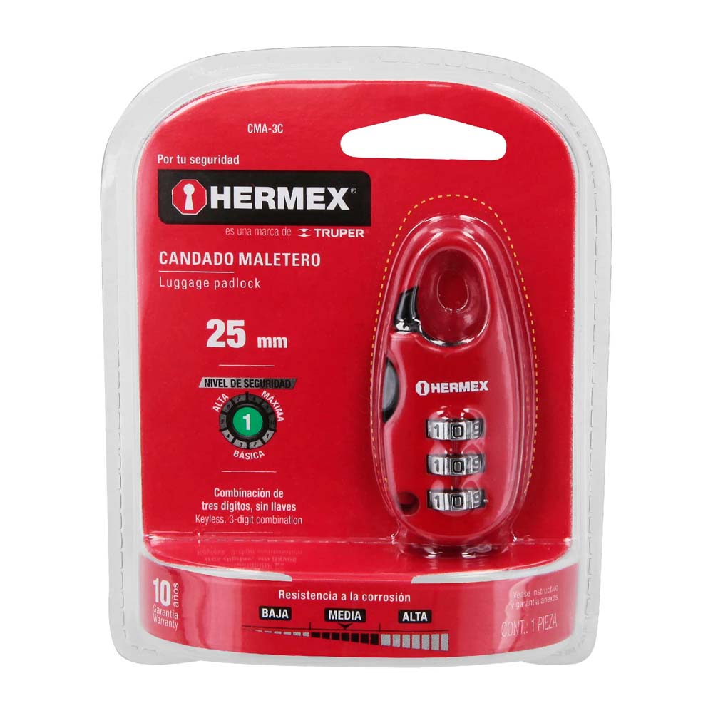 Candado Hermex Maletero de Combinación 25MM Blíster