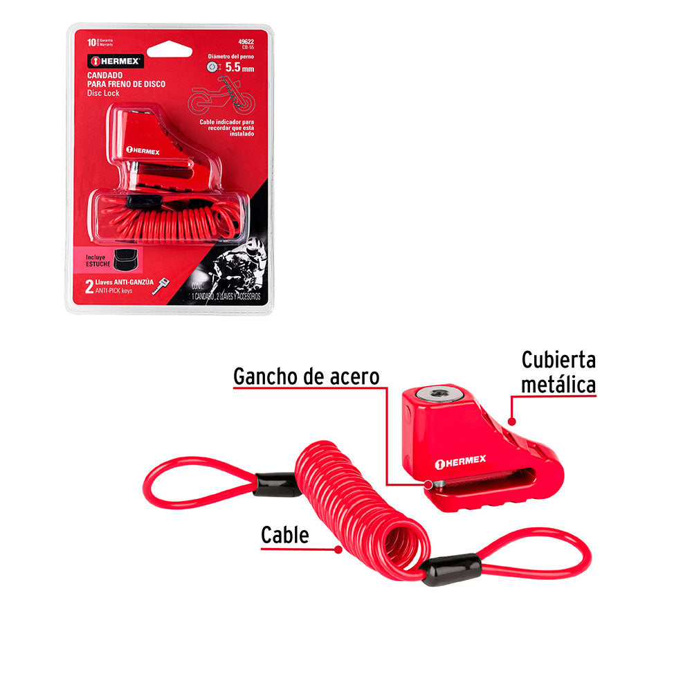 Candado para Disco de Motocicleta Hermex Perno de 5.5 mm