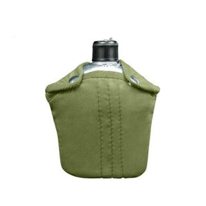 Military Canteen está hecho 100% de aluminio duradero y puede contener hasta un litro de agua. La funda de la cantimplora está hecha con poliéster forrado con fieltro para mantener fresco el contenido de la cantimplora. Un cierre a presión de dos botones mantiene la cubierta de la cantimplora militar correctamente segura.