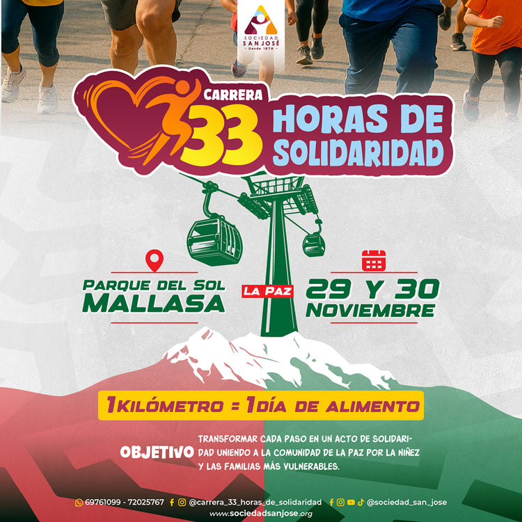 Carrera 33 Horas de Solidaridad La Paz Organizado por la Sociedad Catolica San José Fecha Sábado 29 al Domingo 30 de Noviembre del 2025 Modalidad Aficionados Solidarios
