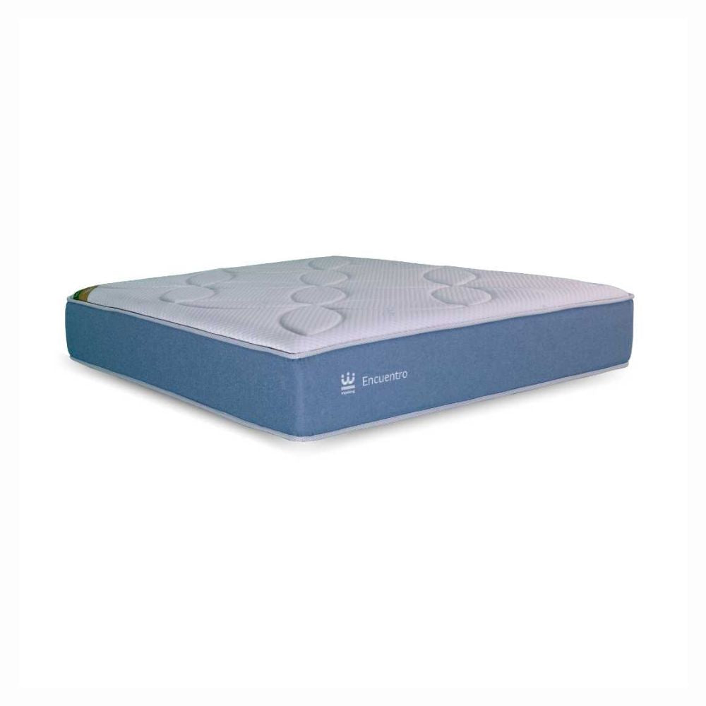 El colchón Encuentro permite equilibrar la temperatura corporal gracias a la Nanotecnologia Cooler con que está fabricado, logra un sueño refrescante y placentero. Incluye una capa de espuma viscoelástica Nasa en la cara superior. Hecho con resortes Pocket Premium independientes, tiene 210 resortes por metro cuadrado, como los resortes son independientes no se trasmite el movimiento entre ellos y permite un mejor descanso cuando el colchón es utilizado por dos personas a la vez. Los resortes a su vez están reforzados siendo el colchón adecuado para personas de hasta 100 kilos. Colchón con sensación media blanda.