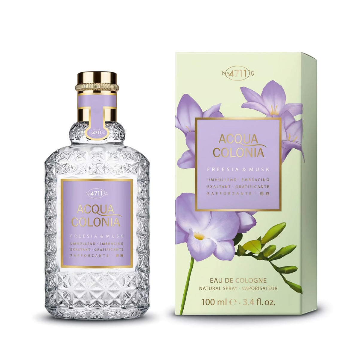 La colonia 4711 Eau de Cologne Freesia and Musk 100ml es una fragancia fresca y floral que combina la dulzura y elegancia de la fresia con la sensualidad y calidez del almizcle. Una fragancia que combina la frescura de la bergamota con la dulzura y elegancia de la fresia, y la sensualidad y calidez del almizcle, creando un aroma único y atractivo.