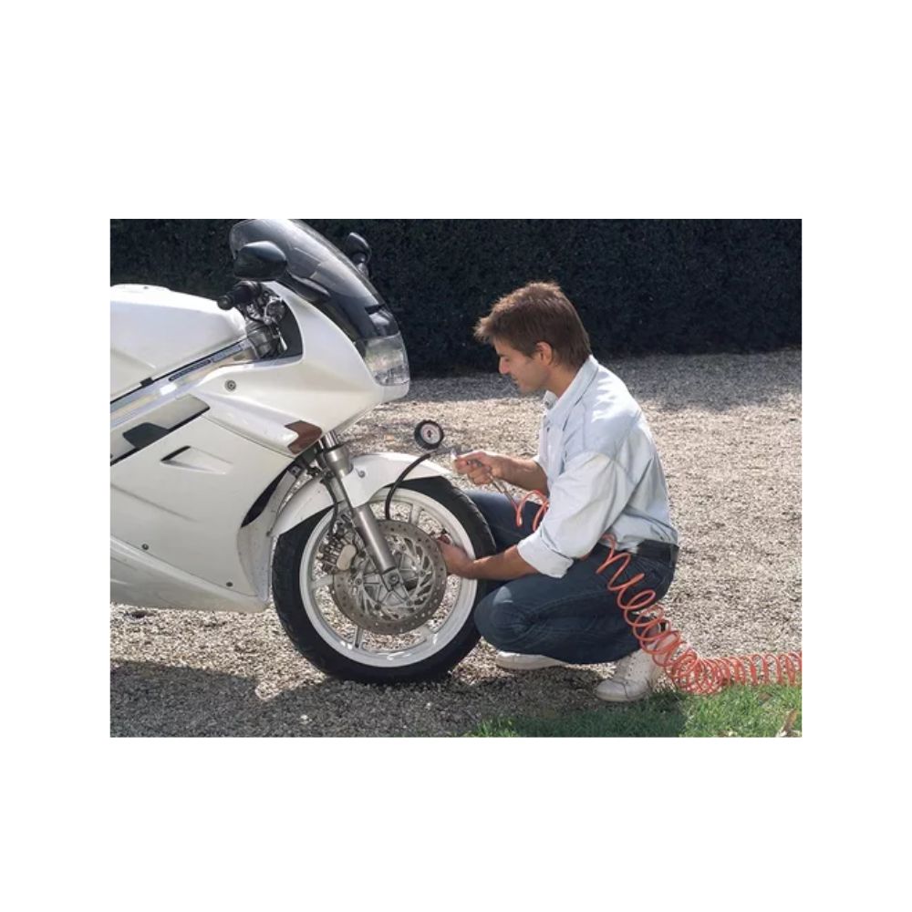 Compresor de aire sin necesidad de aceite, liviano de fácil transporte con acoplamiento rápido para mayor comodidad e indicador y presión regulada.