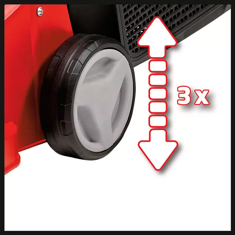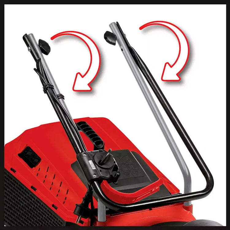 Su potente motor proporciona un par alto para dar fuertes pasadas cuando la hierba está crecida La altura de corte tiene tres niveles y se ajusta mediante una sola rueda permitiendo un ajuste preciso para cubrir cada necesidad. Gracias a la guía plegable, el equipo requiere poco espacio de almacenaje. El cable de alimentación del GC-EM 1032 está protegido contra el desgaste con un dispositivo antitirones. Las ruedas de gran superficie preservan el césped y permiten cortar la hierba sin esfuerzo, incluso en terrenos difíciles. Con un volumen de 30 litros, el cajón de recogida de césped proporciona espacio suficiente para trabajar durante más tiempo.