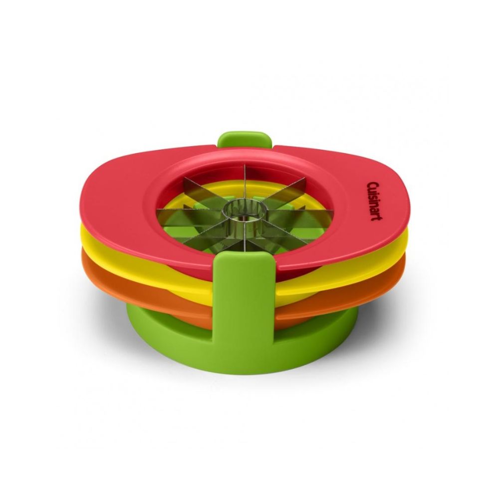 ¡Corte con precisión y rapidez mangos, manzanas, peras, cítricos, tomates e incluso patatas! Rebanador de frutas de cualquier tamaño, descorazonador para cualquier fruta, cuchillas de acero inoxidable duraderas que se anidan en la base para un almacenamiento seguro y cómodo, base ranurada y guías de hoja para cortar todo el camino a través de los alimentos, apto para lavavajillas.