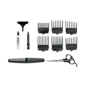 - 4 peines guía, capa, peine, tijera, protector de cuchilla, estuche, aceite y cepillo limpiador.