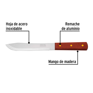 Su mango de madera ofrece un agarre cómodo y seguro, mientras que su hoja de acero inoxidable de alta calidad garantiza un corte preciso y limpio.