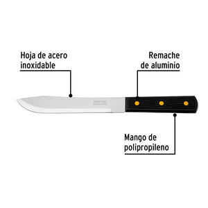 El mango de polipropileno proporciona un agarre cómodo y seguro, permitiéndote cortar, rebanar y picar con precisión y facilidad. Su diseño ergonómico garantiza un control óptimo y ayuda a reducir la fatiga durante el uso prolongado. Este cuchillo cebollero es perfecto para una amplia variedad de tareas en la cocina, desde cortar cebollas hasta picar carne y verduras.