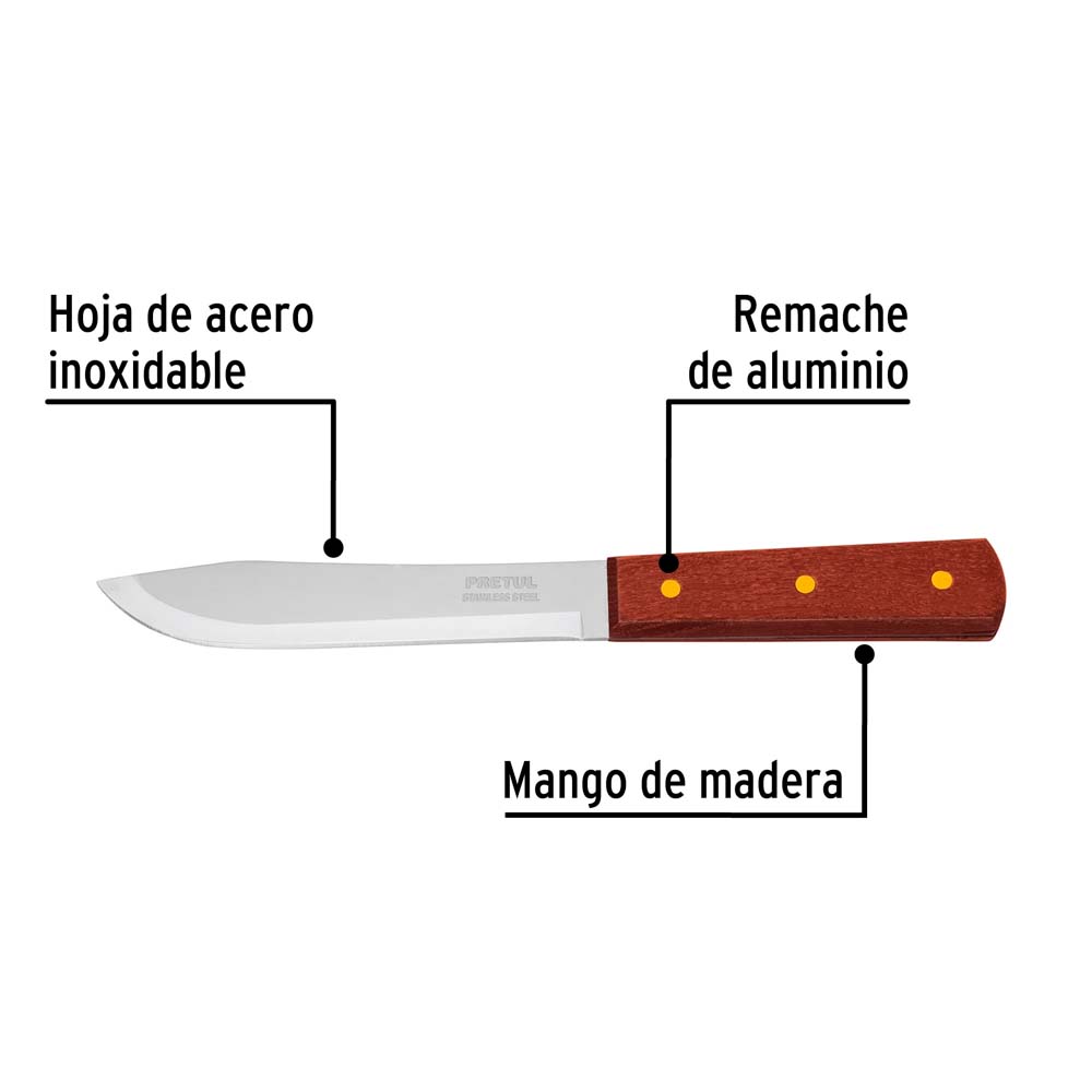 Su mango de madera ofrece un agarre cómodo y seguro, mientras que su hoja de acero inoxidable de alta calidad garantiza un corte preciso y limpio.