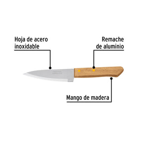 Con una hoja de acero inoxidable de alta calidad de 5 pulgadas, este cuchillo ofrece un equilibrio óptimo entre precisión y durabilidad. El mango de madera proporciona un agarre cómodo y seguro, permitiéndote realizar cortes precisos con facilidad y control. Su diseño ergonómico reduce la fatiga durante el uso prolongado, lo que lo hace ideal para cualquier tarea culinaria, desde picar finamente hierbas hasta cortar carne y verduras.