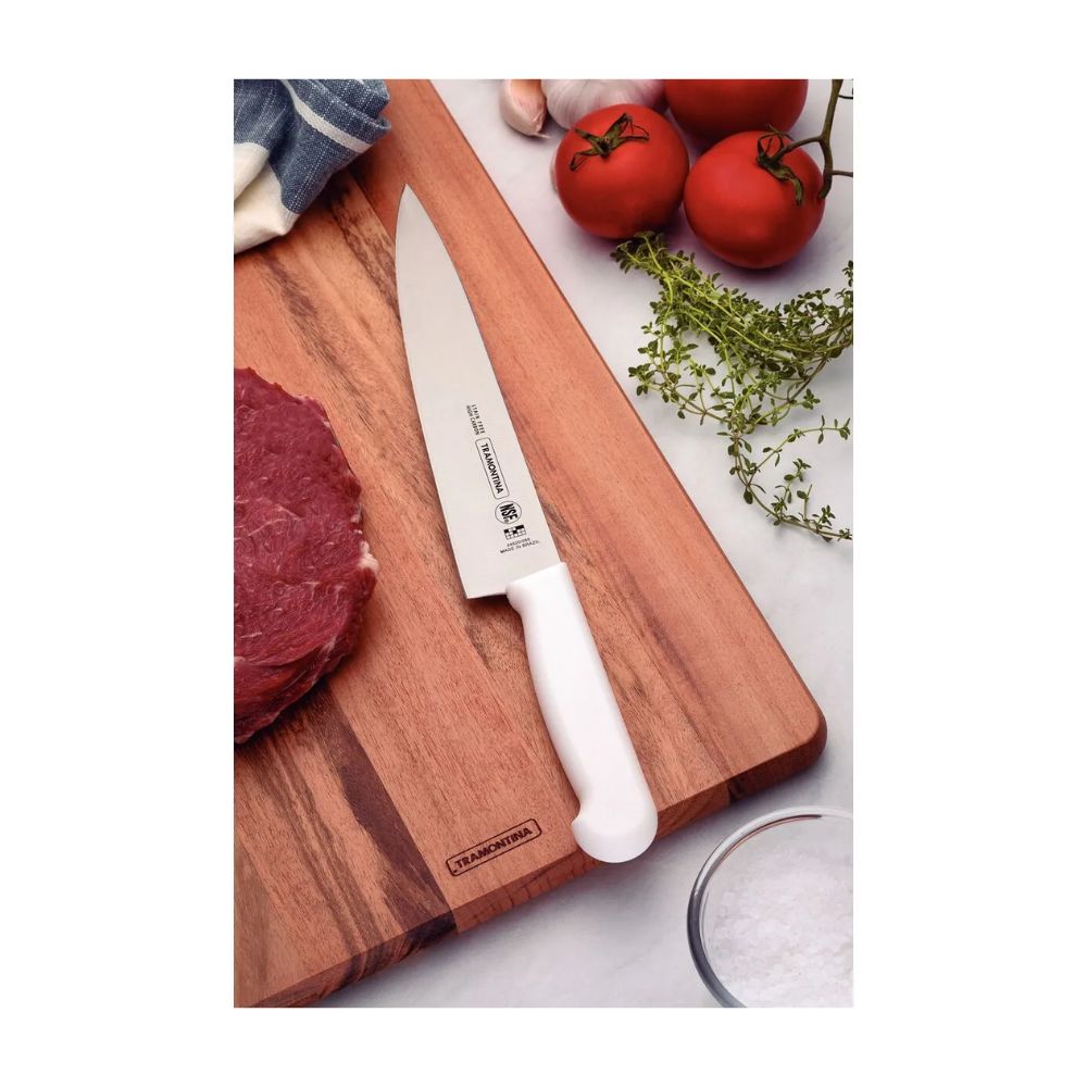 Si le gusta tener los utensilios adecuados para desempeñar con calidad su trabajo en la cocina, el cuchillo para carne Tramontina Profissional con lámina en acero inoxidable y mango de polipropileno blanco con protección antimicrobiana de 8 pulgadas es la elección ideal. Con mayor durabilidad y resistencia, gracias a que está desarrollado en acero inoxidable con tratamiento térmico, la pieza ofrece un corte fácil y preciso. Además, el mango de polipropileno es ideal para combinar con diversos ambientes, ofrecerles la belleza que su comida merece y obtener la protección ideal contra bacterias y hongos. ¡Para seguridad y resistencia, cuente con los productos Tramontina!