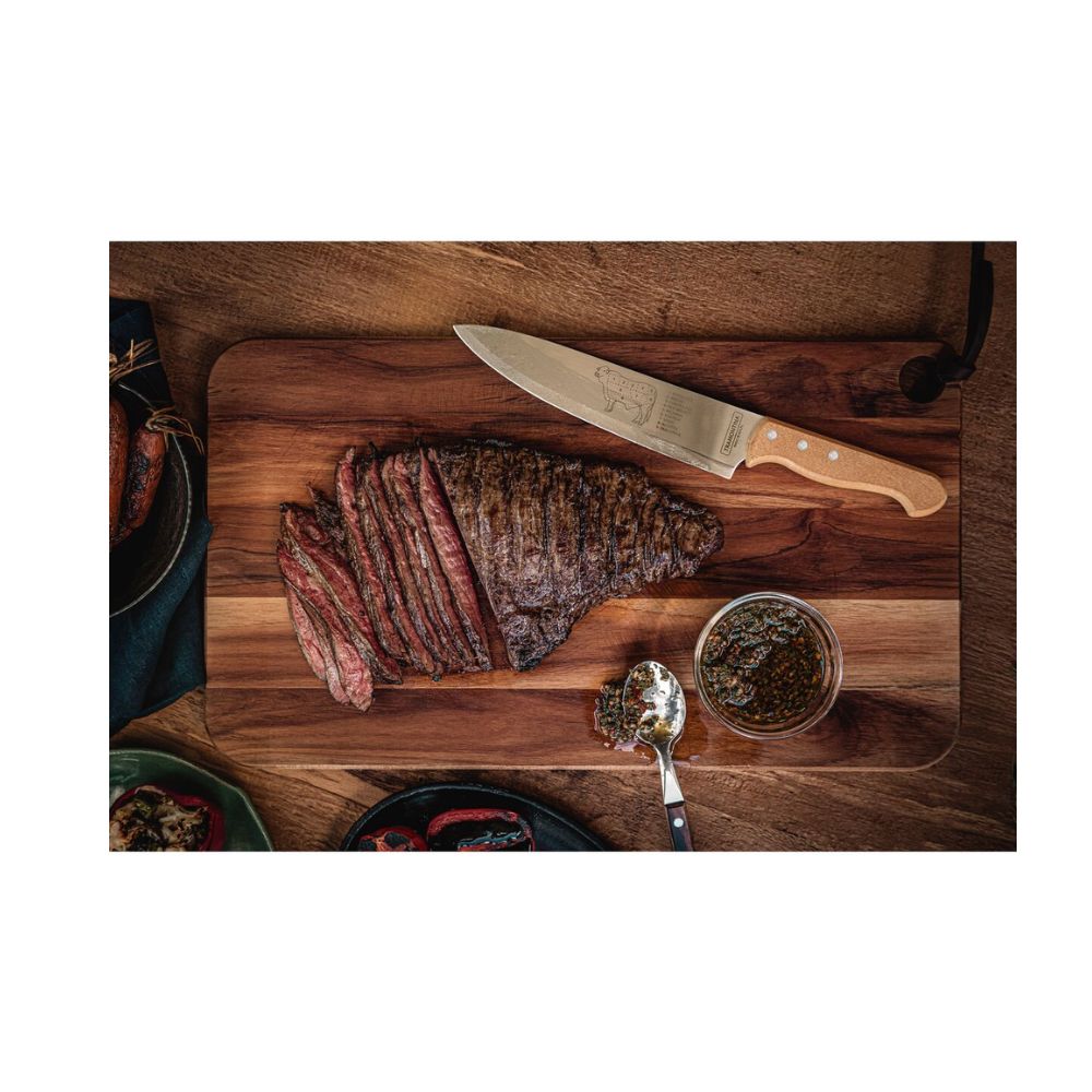Con el cuchillo para asado Tramontina Churrasco de 8 pulgadas con hojas de acero inoxidable y mango de madera natural, atender a tus invitados será aún más práctico y sabroso. Con hoja de acero inoxidable, garantiza mayor durabilidad del filo gracias al tratamiento térmico. Además, el mango de madera natural añade un toque sofisticado a la hora de servir. Tu barbacoa será un éxito con este elegante cuchillo.
