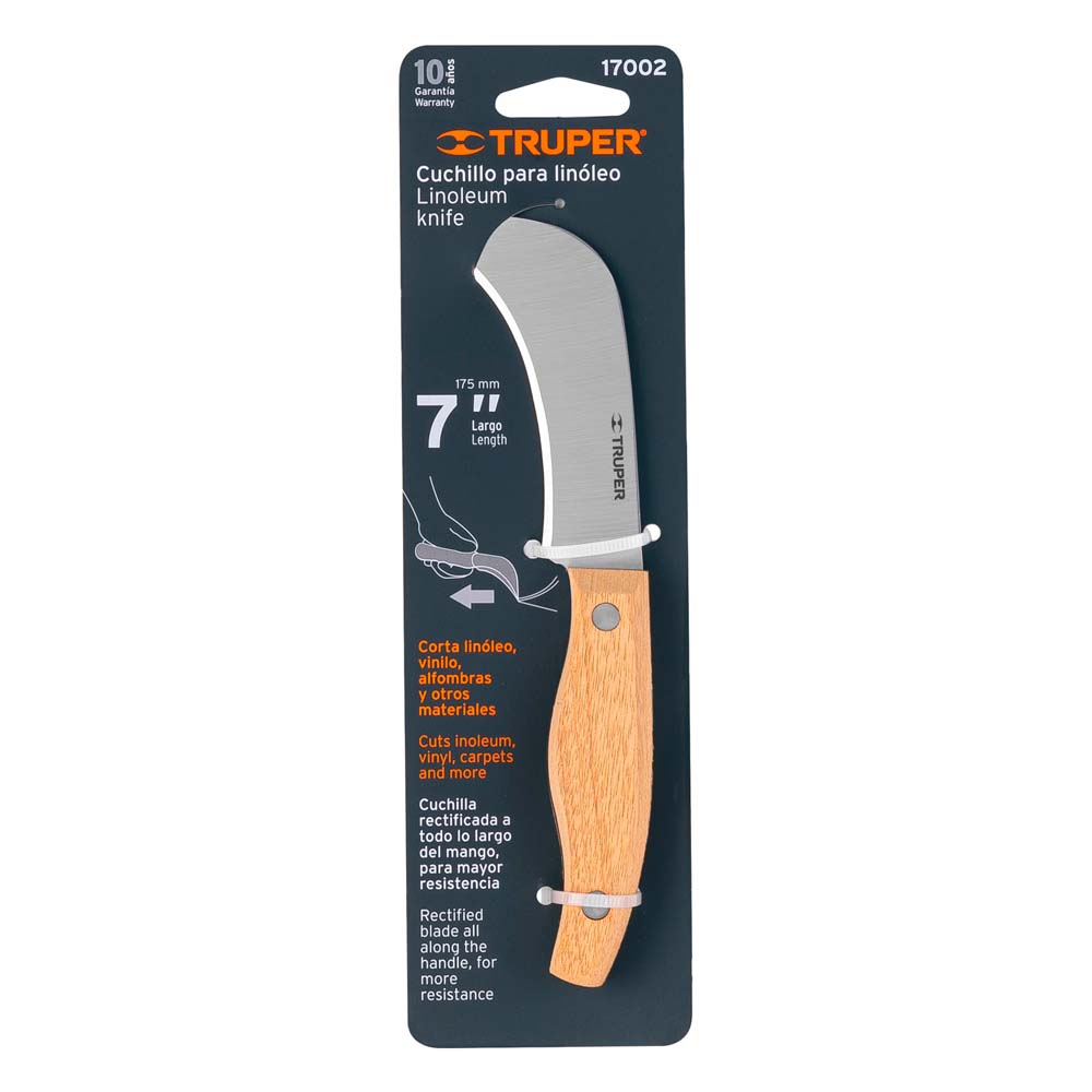 Su hoja de acero inoxidable de 7" es perfecta para cortar linóleo, vinilo, láminas y otros materiales de construcción.